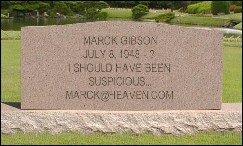 New epitaph: “I should have been suspicious when my doctor did television ads for a funeral home.” (No offense intended, Dr. C__.)